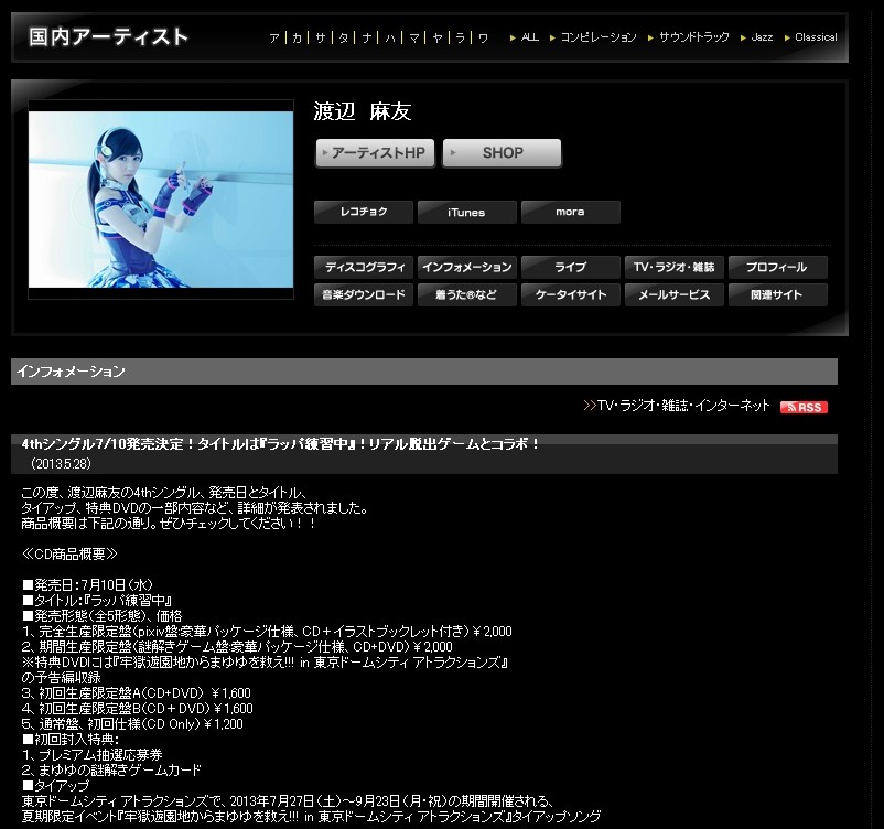 http://www.sonymusic.co.jp/Music/Arch/SR/mayuwatanabe/?info&id=aep425397
