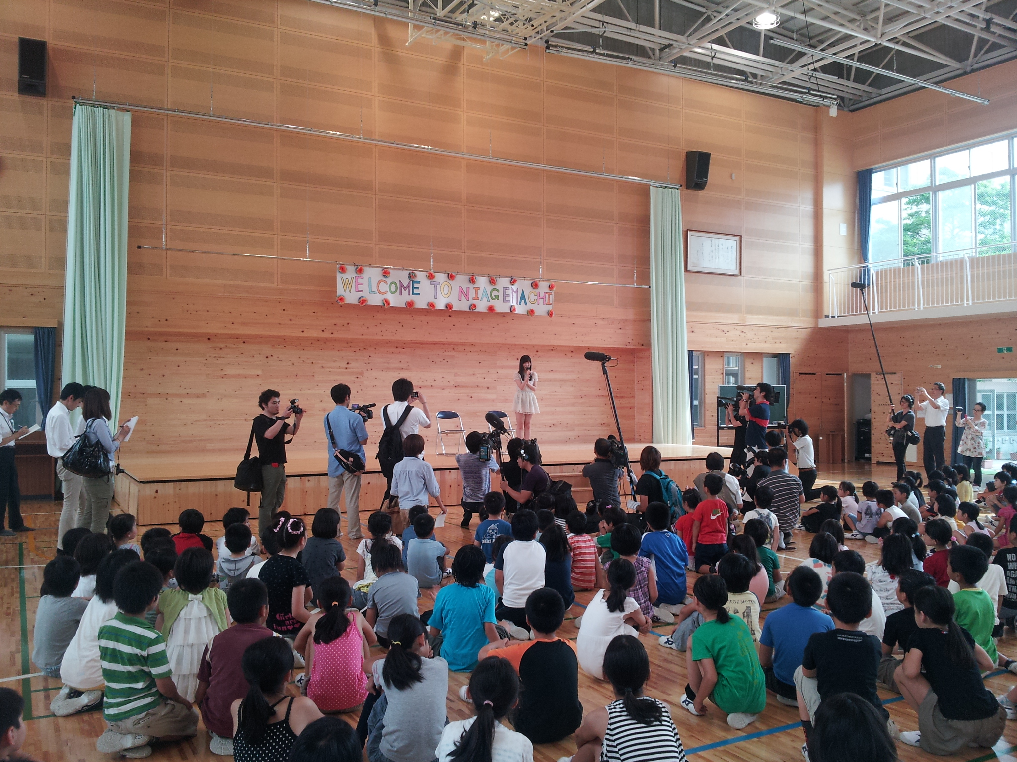 知らされていなかった全校児童197人は「さっしーだ」と興奮。