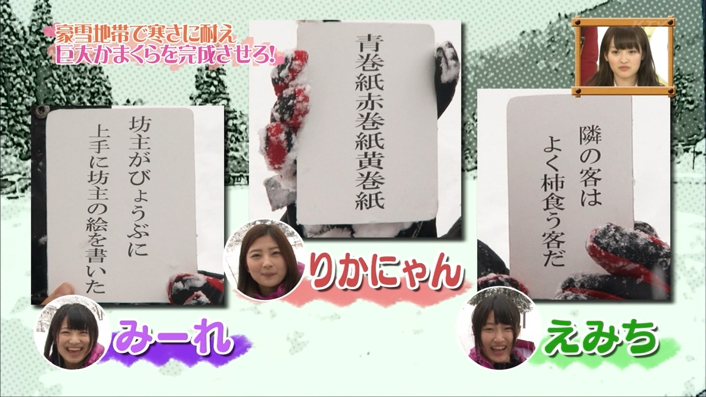 緊迫する状況の中、果たして4人は見事、巨大かまくらを完成させることができるのか!?