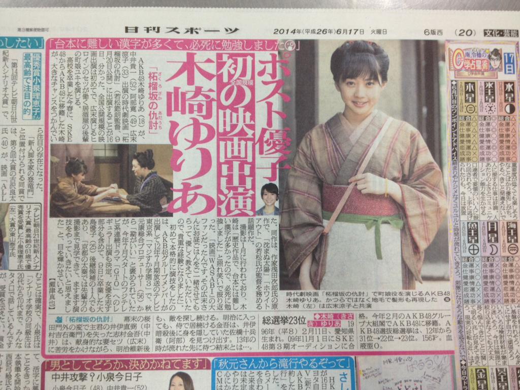 AKB48木崎ゆりあ、本格時代劇に初挑戦!町娘役で広末涼子と共演!
