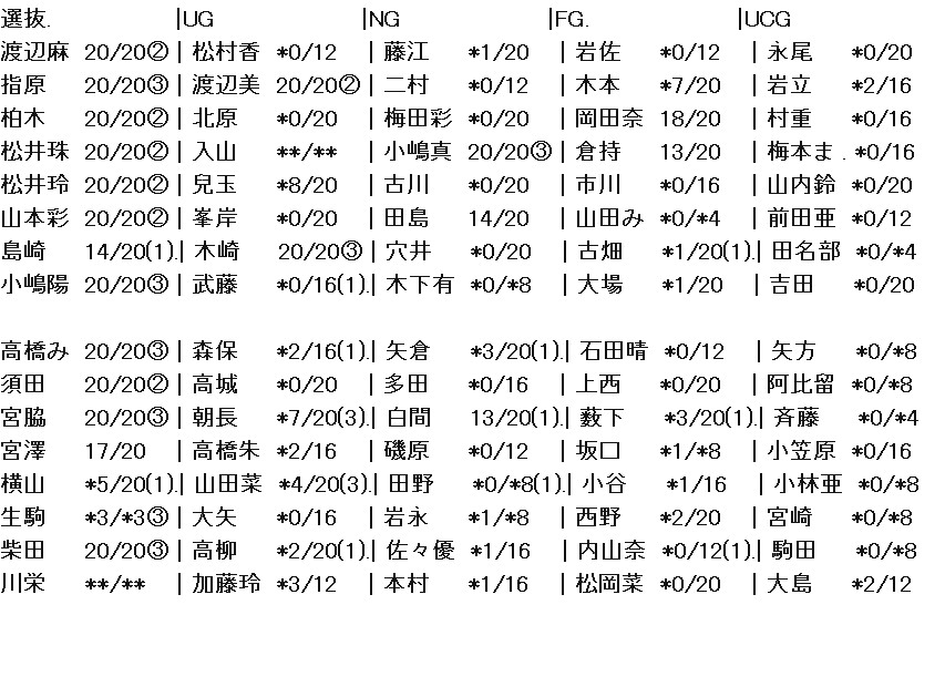 田中美 *0/16 多田 *0/16 山内祐 *0/*4