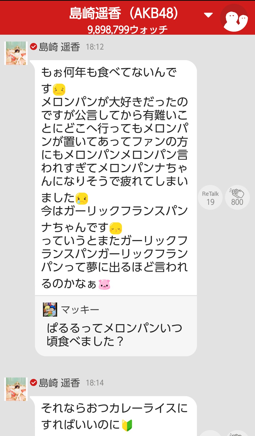 2年前にはあいにゃんとメロンパン飽きたって話してたな