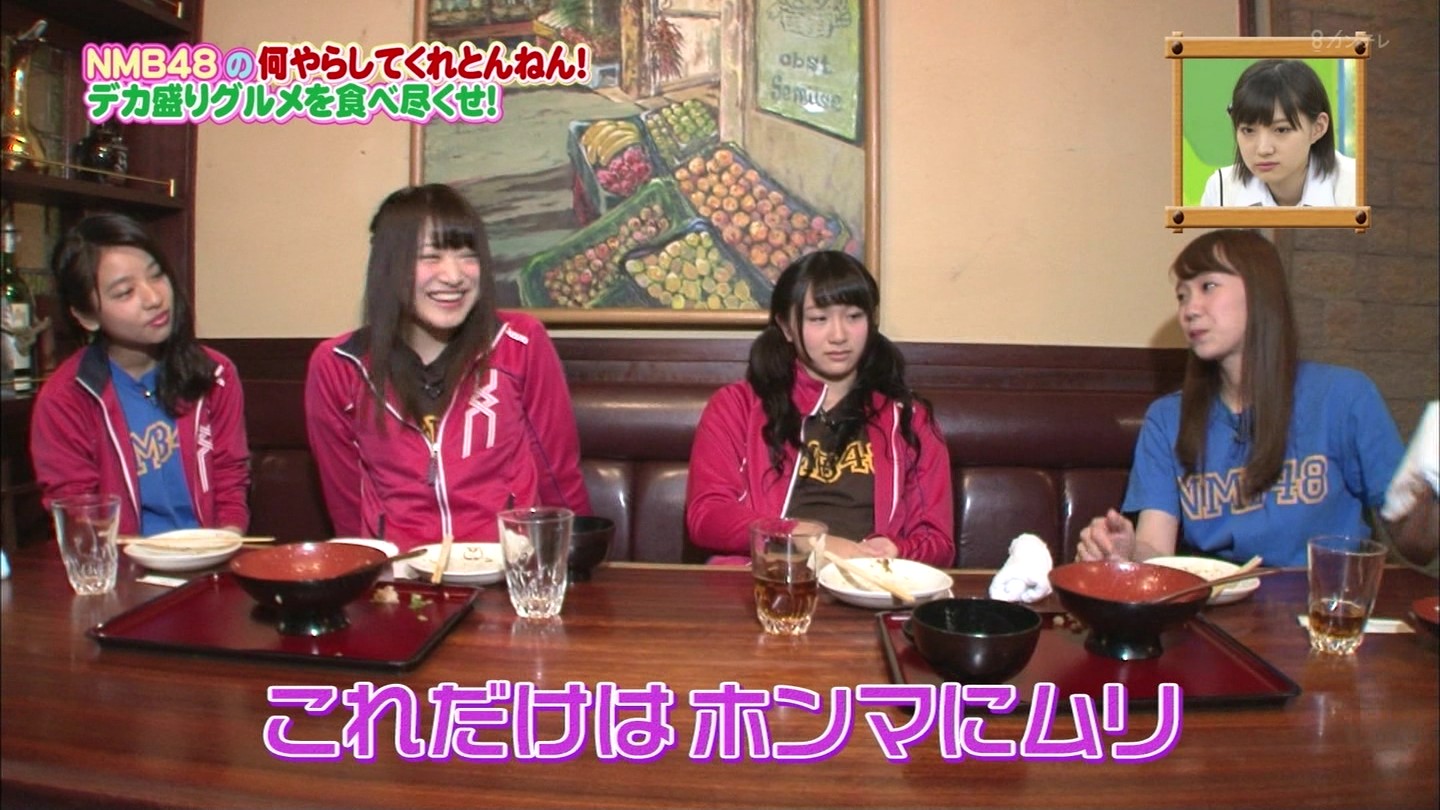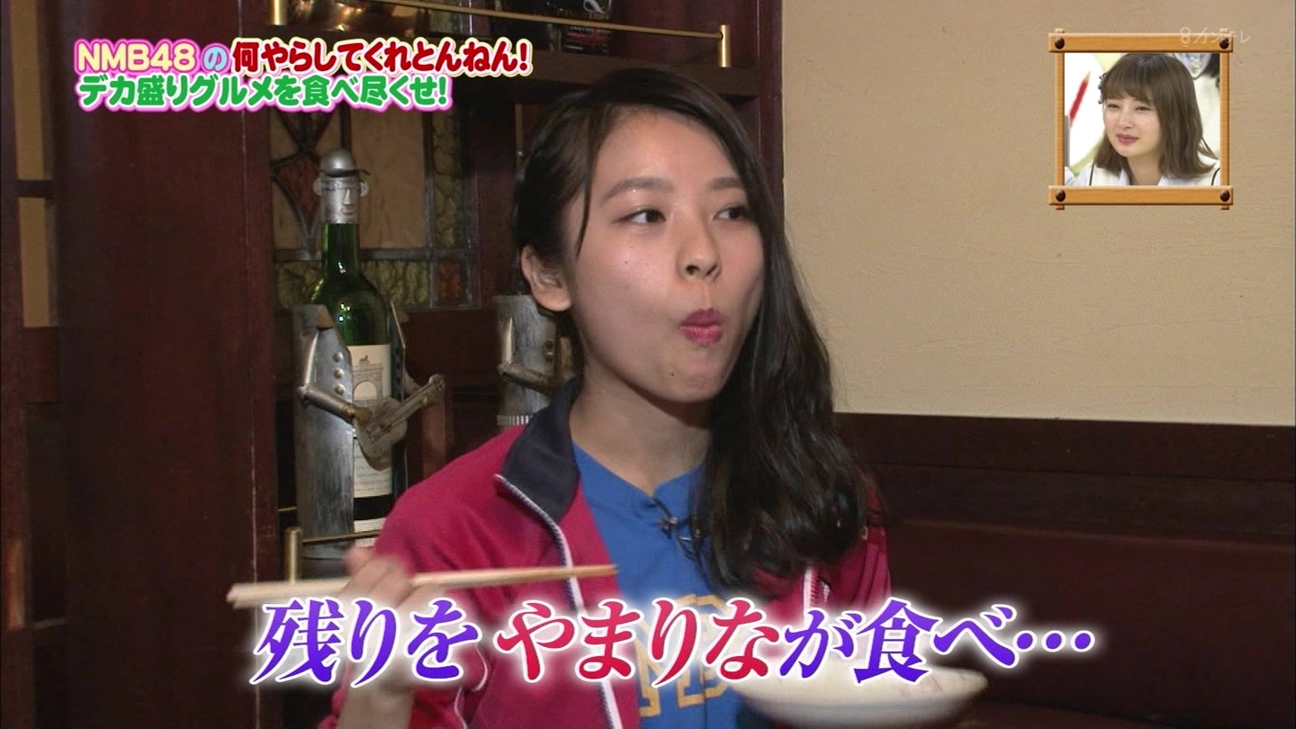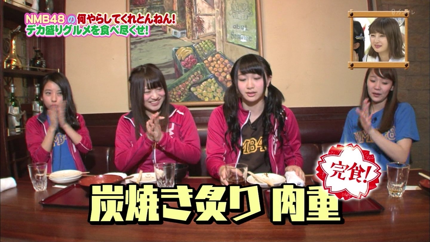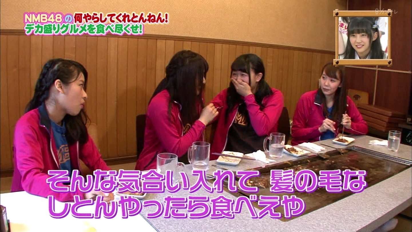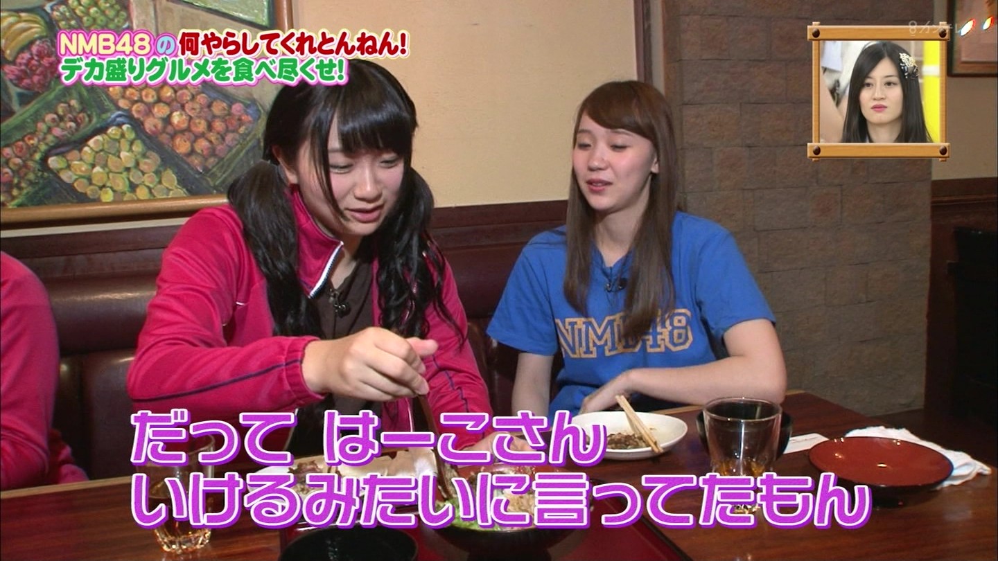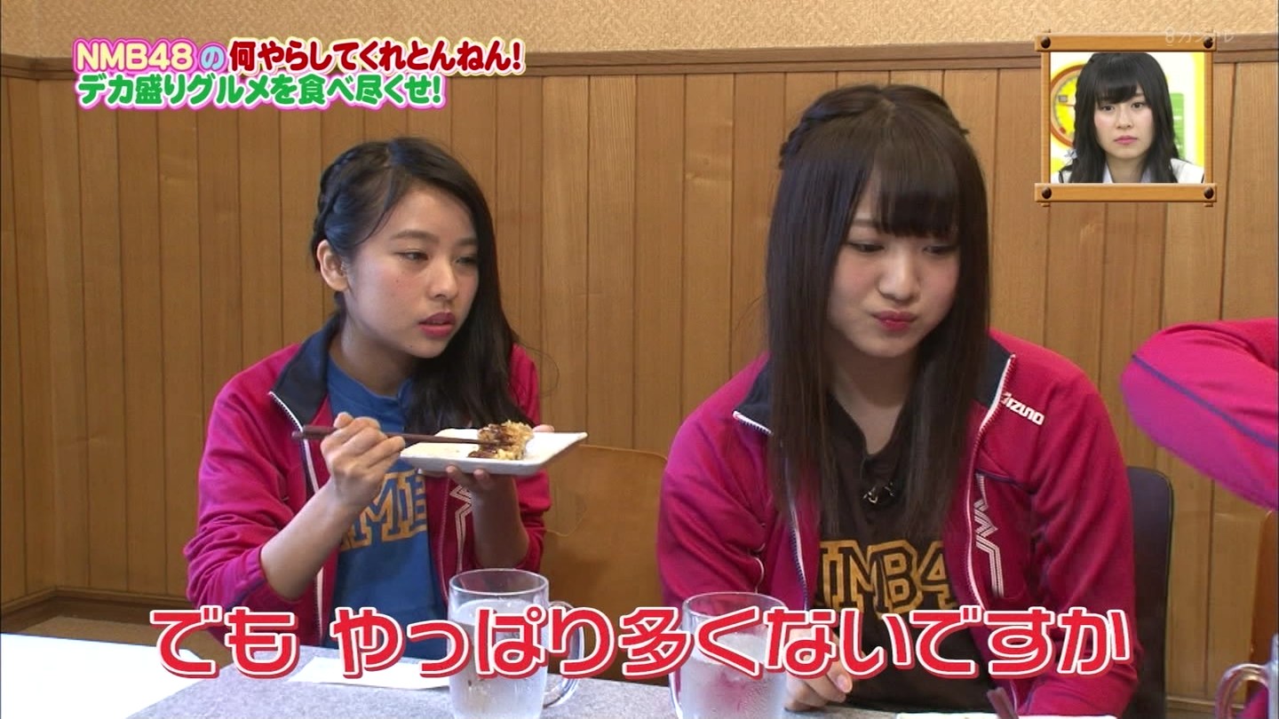 京都では直径40cmのジャンボお好み焼きに!大阪では重さ1.3kgの炭焼き炙り重に挑戦!最初はアイドルらしい笑顔全開だったのに、次第に苦悶の表情に…。