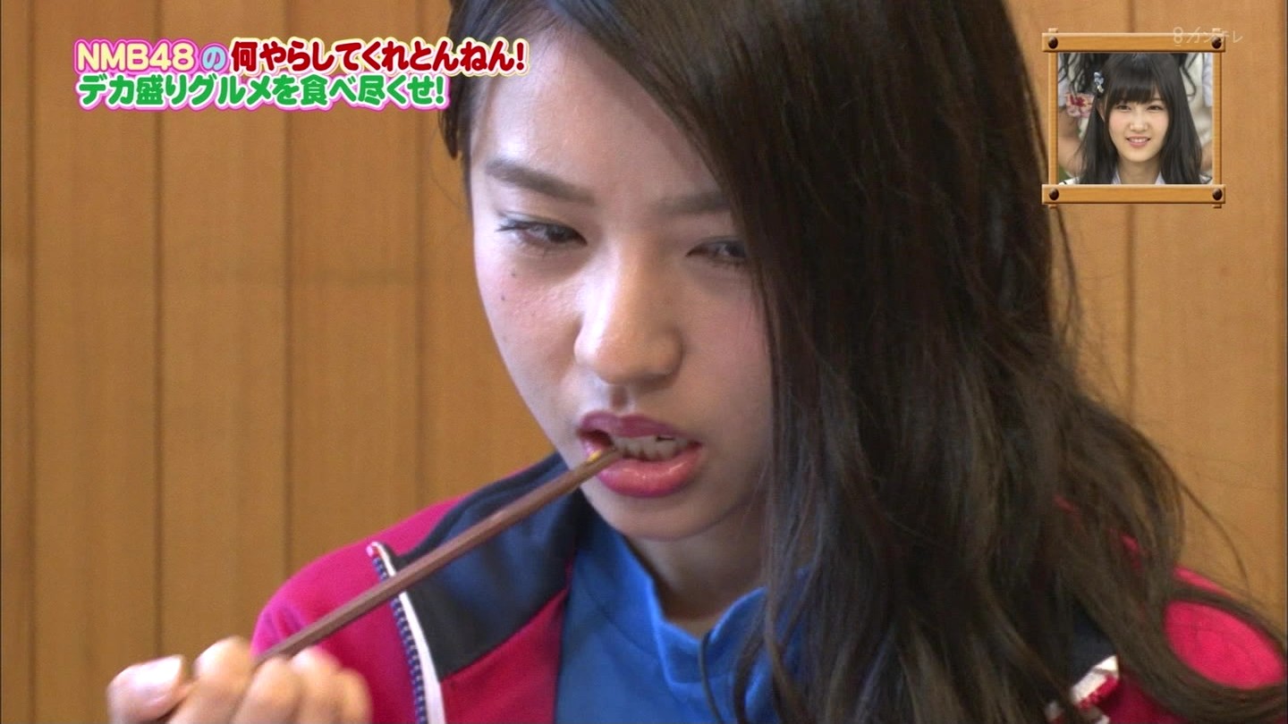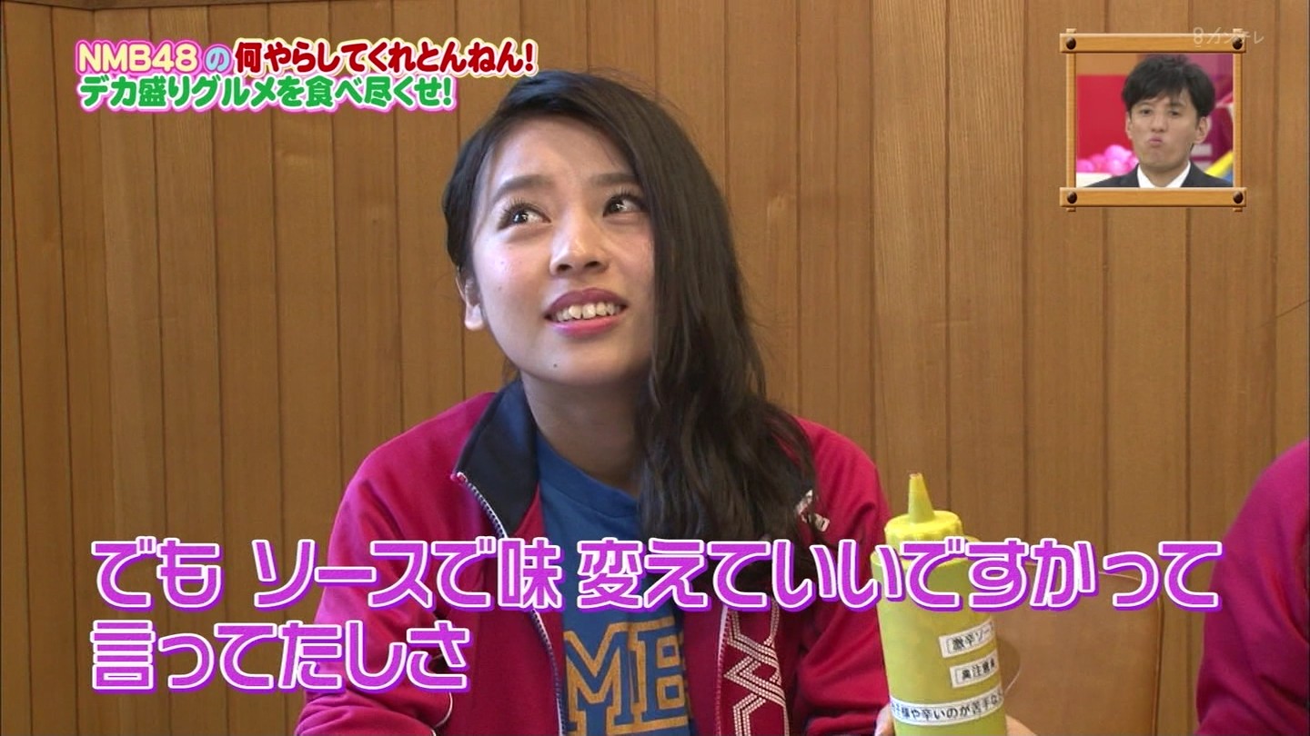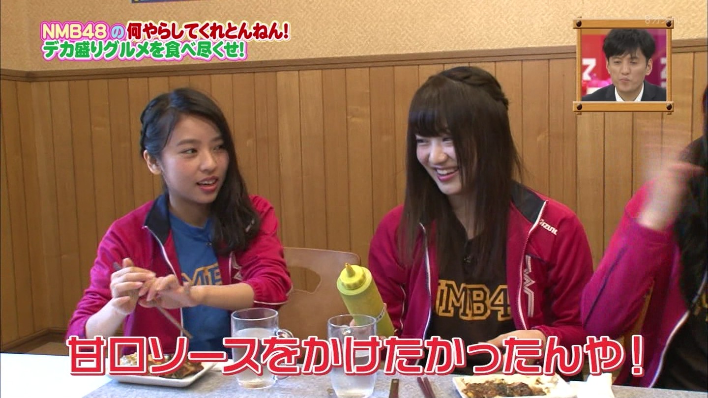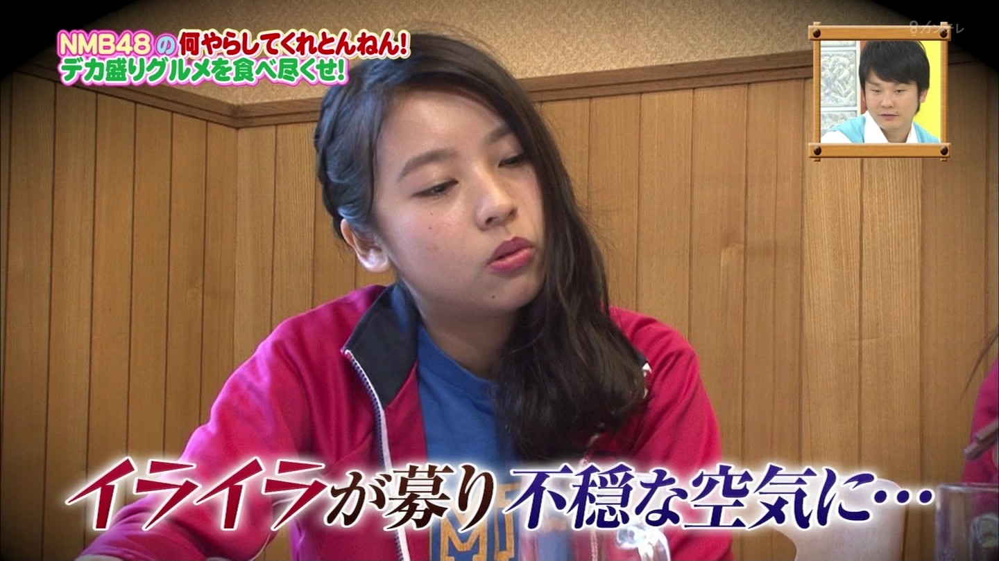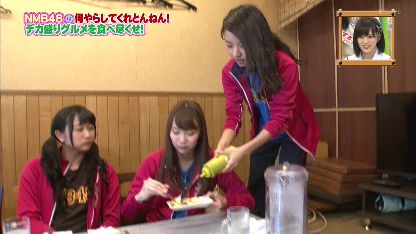 京都では直径40cmのジャンボお好み焼きに!大阪では重さ1.3kgの炭焼き炙り重に挑戦!最初はアイドルらしい笑顔全開だったのに、次第に苦悶の表情に…。