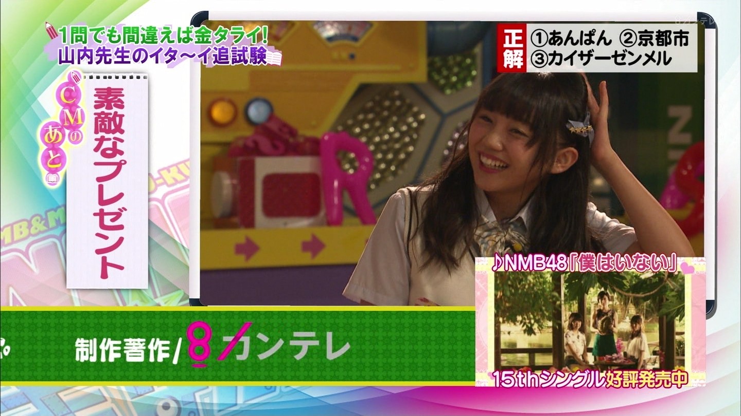 NMB48(吉田朱里、植村梓、磯佳奈江、沖田彩華、上西恵、内木志、山本彩、薮下柊、黒川葉月、矢倉楓子、大段舞依、白間美瑠、山尾梨奈、太田夢莉、岸野里香、須藤凜々花)