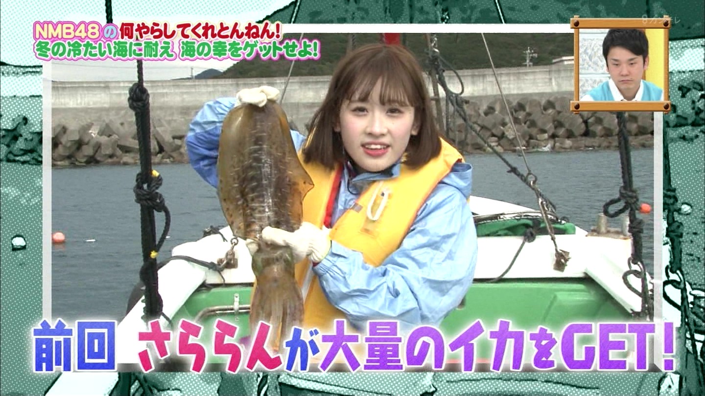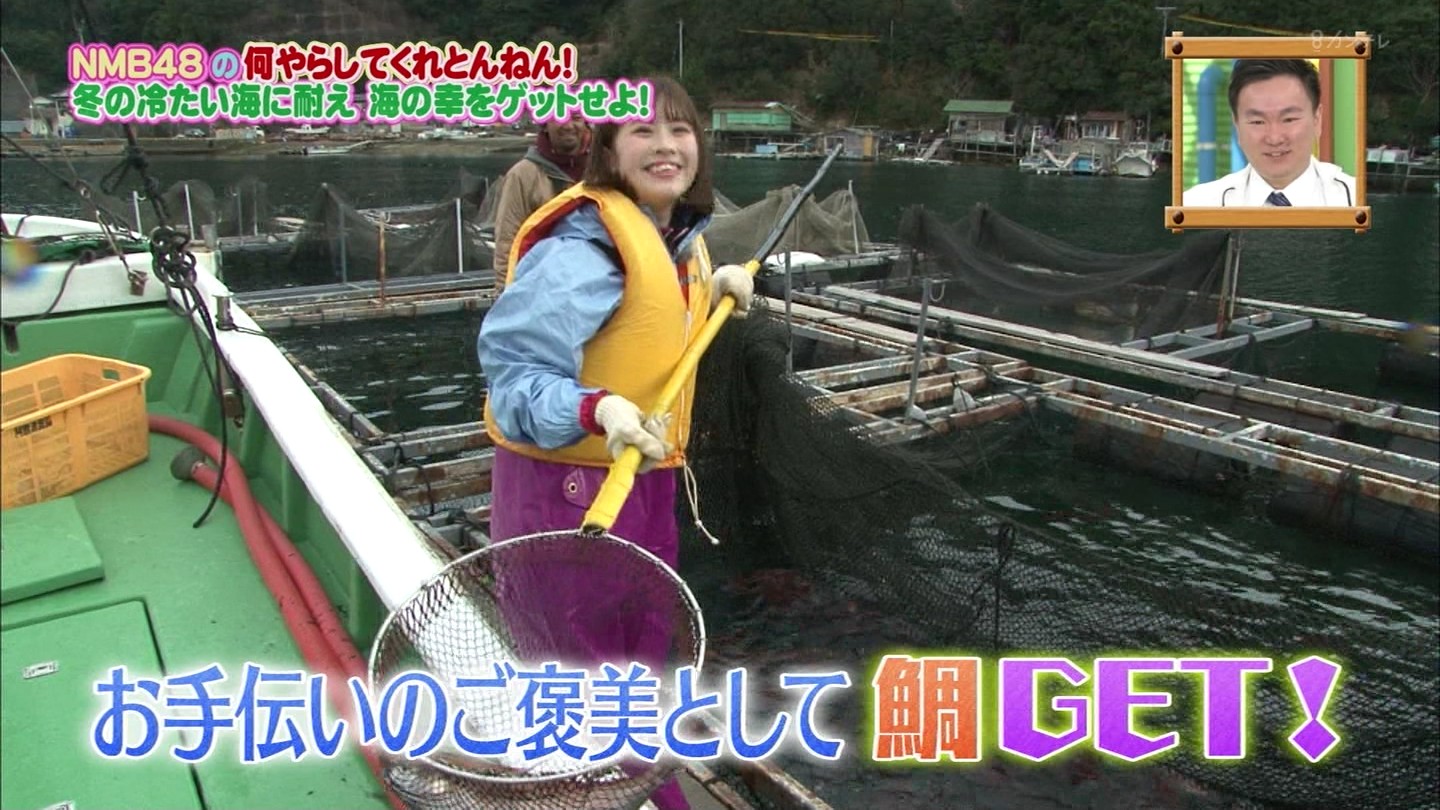 一方、泳げないさららんは、鯛の養殖場のお手伝いし、ご褒美に鯛をゲット!!そして、ゲットした海の幸を試食!!