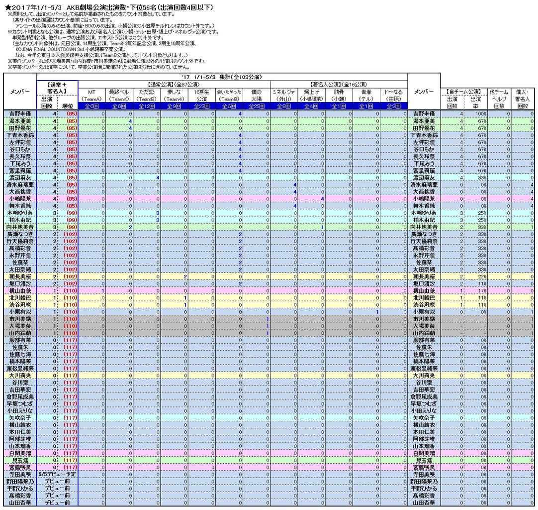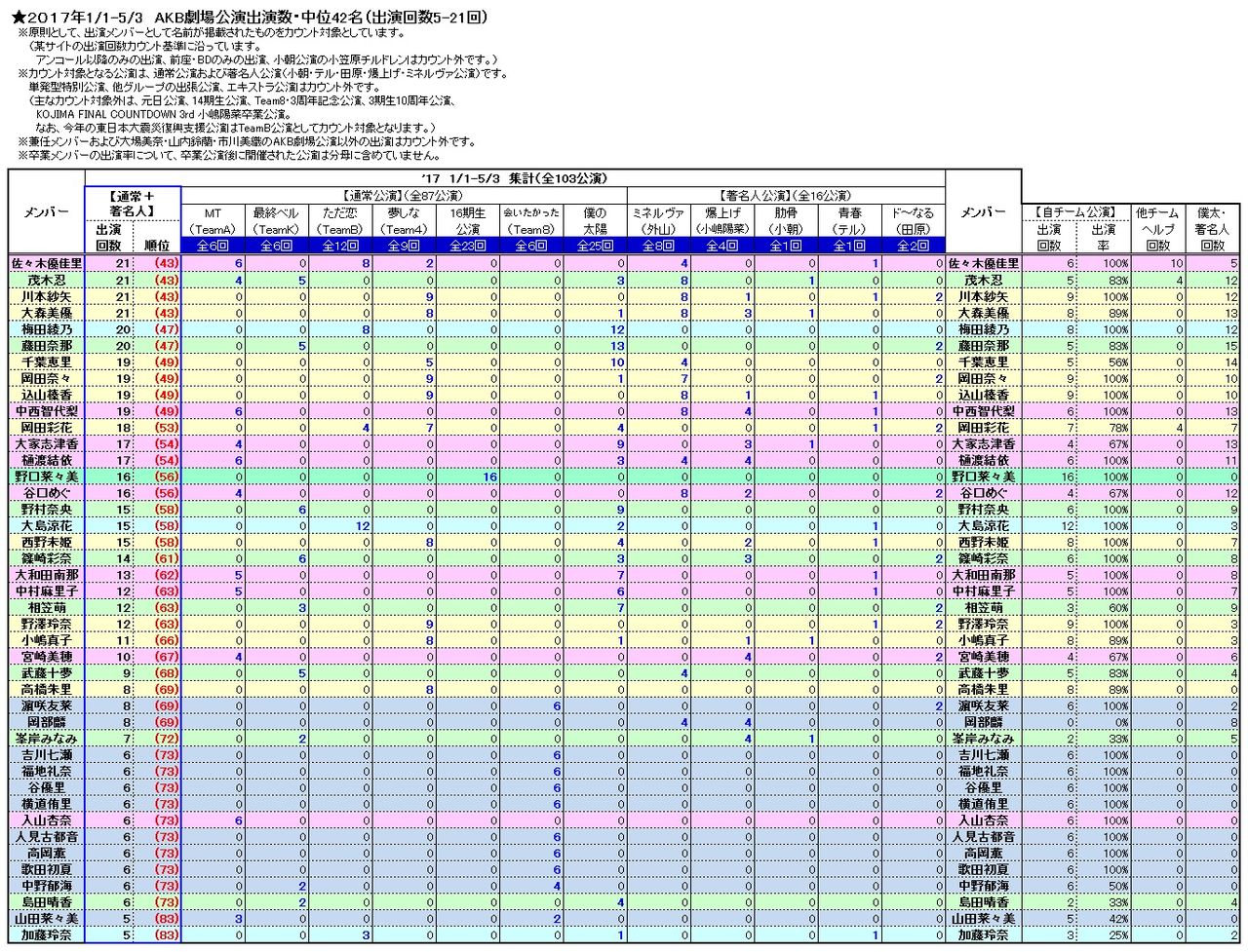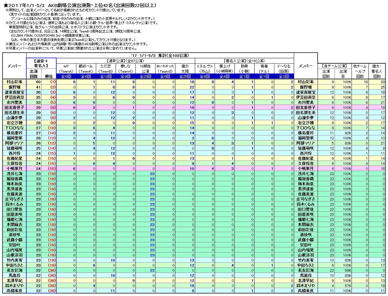 いっそ自チーム公演を排除して著名人&僕太&他チームアンダーのみをまとめれば劇場職人ランキングとして使えるかな?