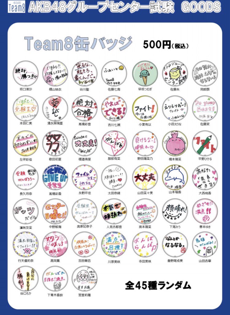 ・缶バッジ(45種ランダム封入) 500円(税込)