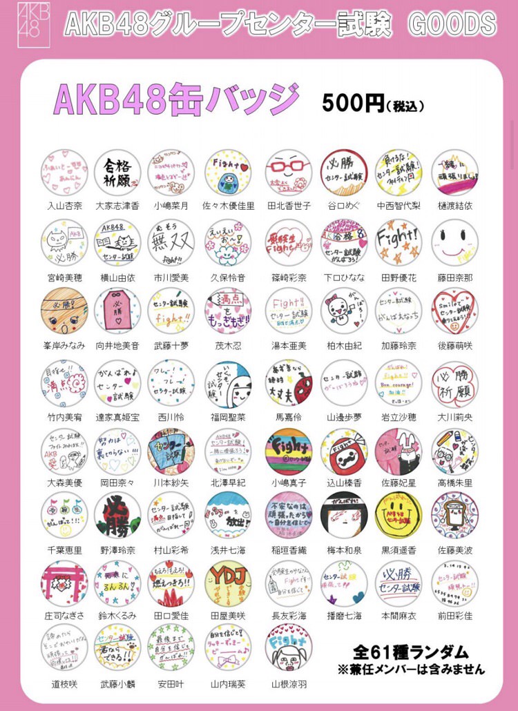 ・缶バッジ(61種ランダム封入) 500円(税込)