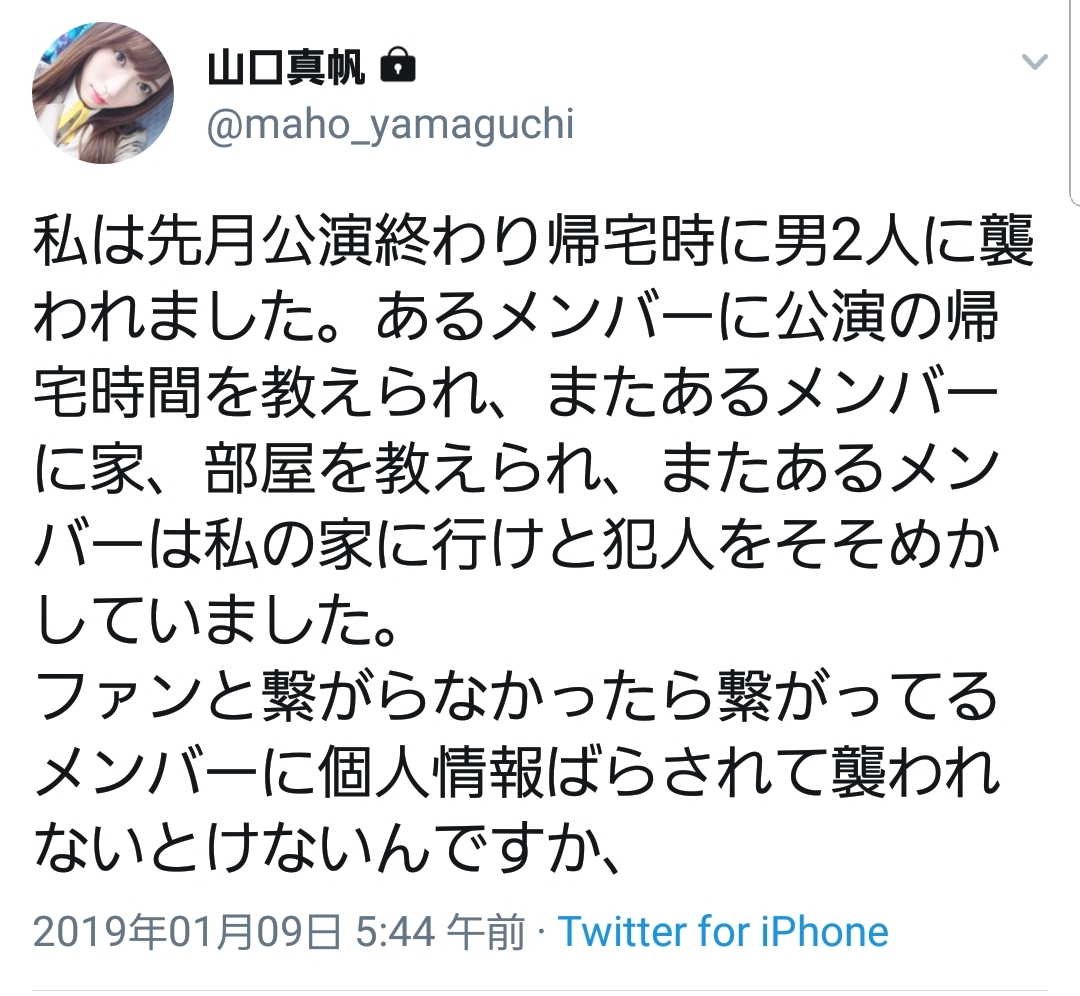 「今村さんも『クリーンなNGT48にする』『悪いことをするやつは逮捕(解雇?)する』って言っていたのに誰も何もしてくれない」#ngt48 #山口真帆