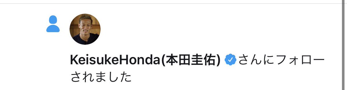 本田からフォローされたことを報告している。