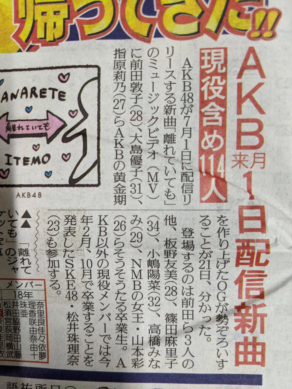 <AKB48>新曲「離れていても」に前田敦子、大島優子ら卒業メンバー8人参加