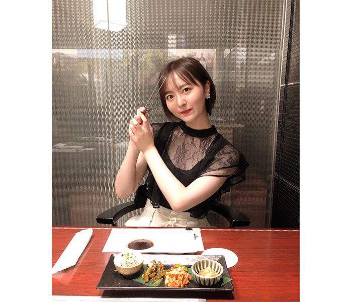 焼肉デートの雰囲気を感じることができる彼女感ショットを公開した。焼肉を目の前に笑顔ではしゃぐ姿が可愛らしい。