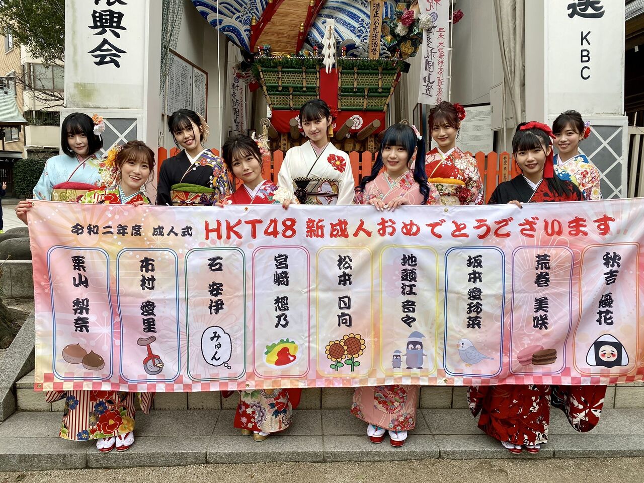 本日、HKT48から9名のメンバーが成人の日を迎え、櫛田神社にて成人式を行いました。