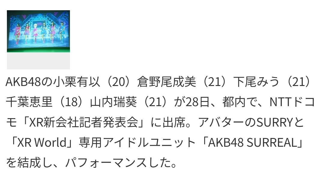 『AKB48 SURREAL(サーリアル)』は。ドコモが提供するメタバース「XR World」専用アイドルユニット。リアルとバーチャルを混合させたユニットは国内初という。。