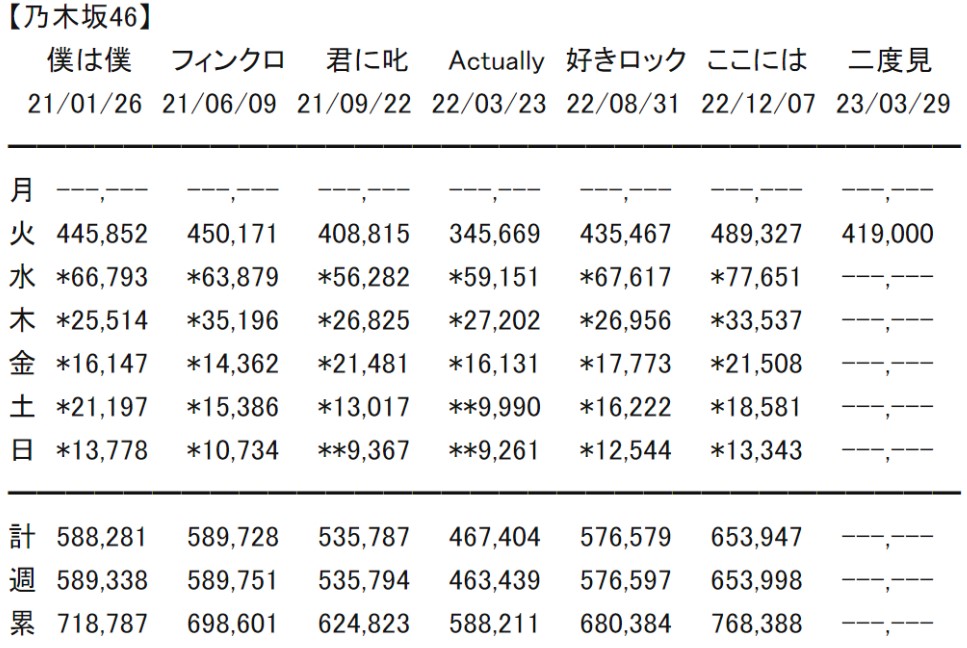 乃木坂ですら一期消滅でこんな下がるとかそう考えたら櫻坂とかよく耐えてる方なんだな