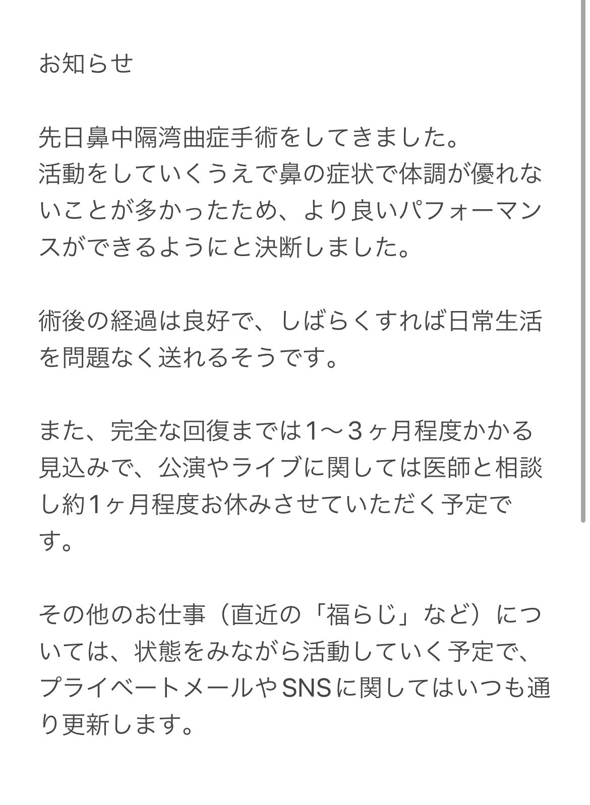 手術したから1ヶ月とちょっと休みますだけか