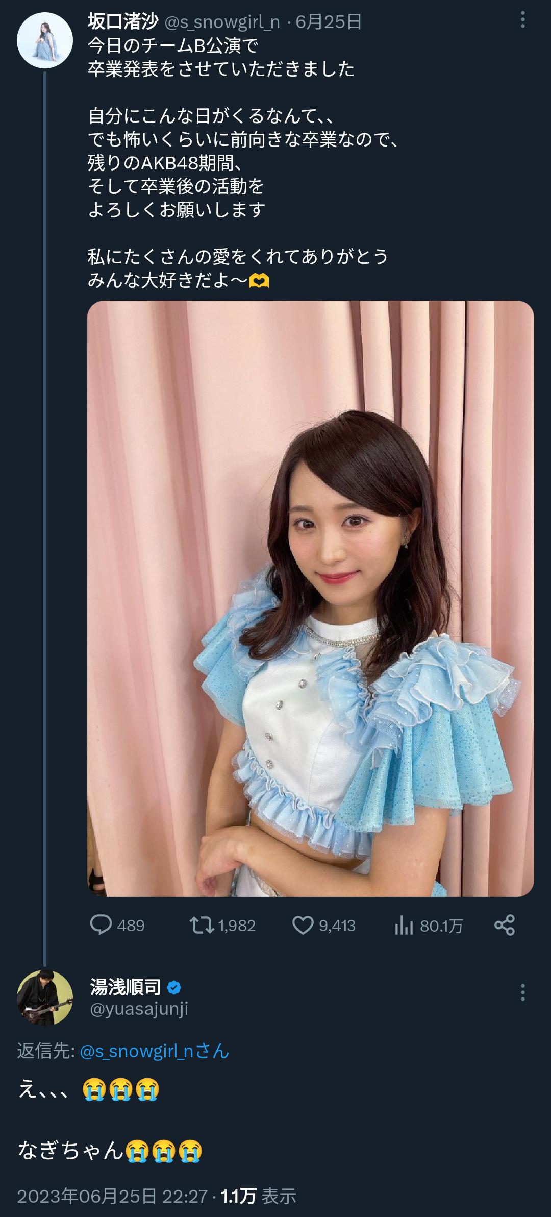 なぎちゃんが湯浅にAKBでの待遇不満と卒業示唆したから