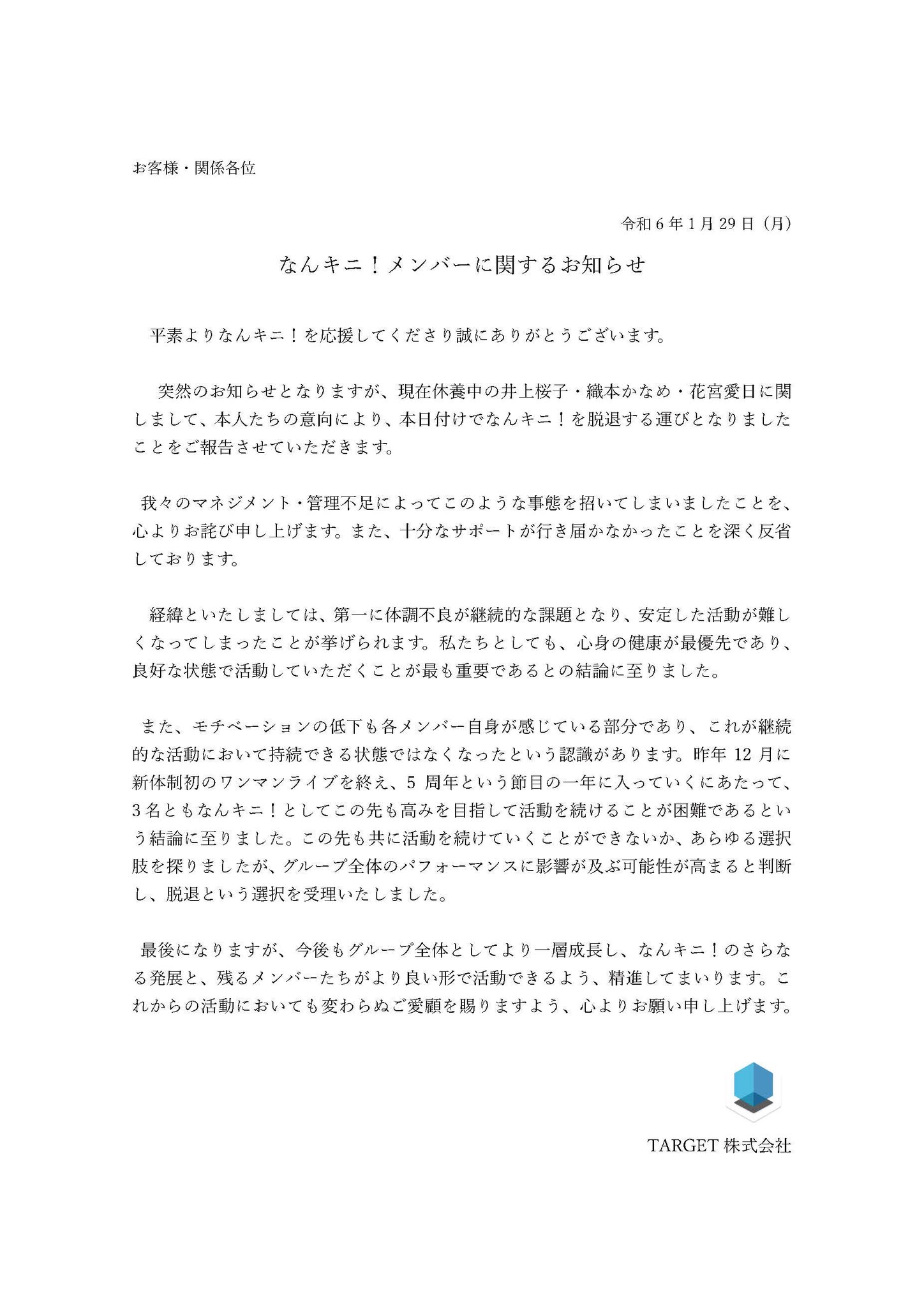 去年加入した3名が休養脱退では闇は深そう