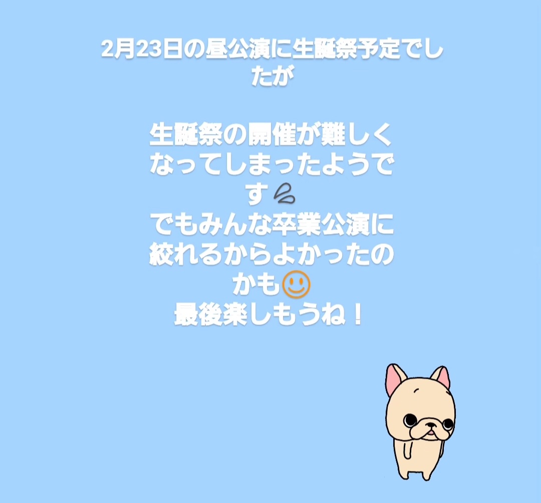 生誕委員は昼に入らざるを得ないし、そうなると夜の卒公は絶対入れないし、可哀想すぎたからなァ