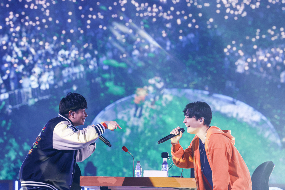 感動の余韻が残る中、いつもどおりに「死んでもやめんじゃねーぞ」のコーナーに。そのまま、エンディングトークになり、ラジオブースを模したトロッコでドームを回っていった。最後は、再び2人が登場し、圧巻の漫才で大団円を迎えた。