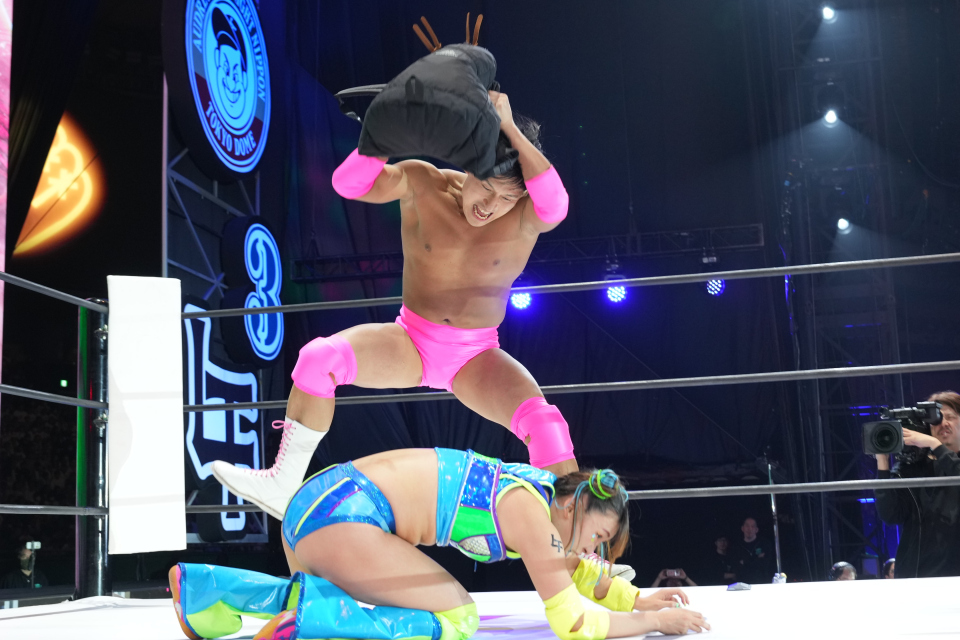 春日と妻・クミさんをめぐる「味玉論争」から派生して、実際のプロレスを行う展開に。クミさんの援軍としてフワちゃんと春日のシングルマッチが行われた。若林がDJプレイを行うパートでは、番組内の名言を「ビタースウィートサンバ」に乗せて紹介する一幕が。2曲を終えて、「Orange」のDJプレイに入るかと思われたところで星野源がサプライズ登場を果たし、会場の観客から驚きと大きな歓声が上がった。花道中央で会った2人は「Orange」を披露し、その後はセンターステージで「Pop Virus」のコラボを行った。