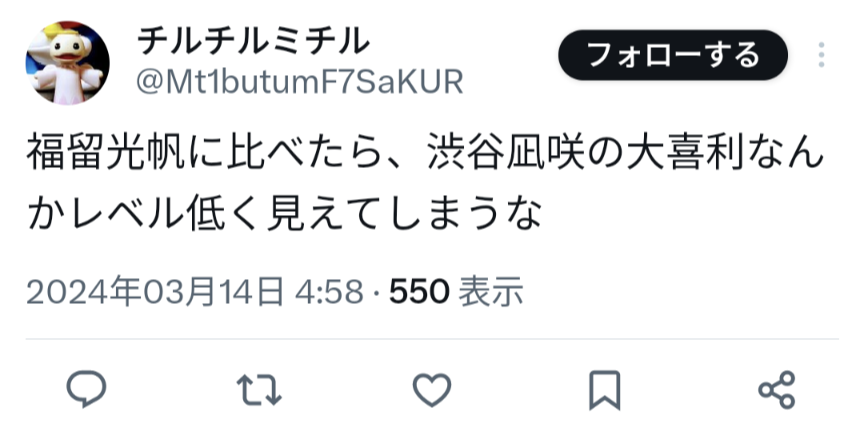 33: 47の素敵な 2024/04/06(土) 17:50:30.52
