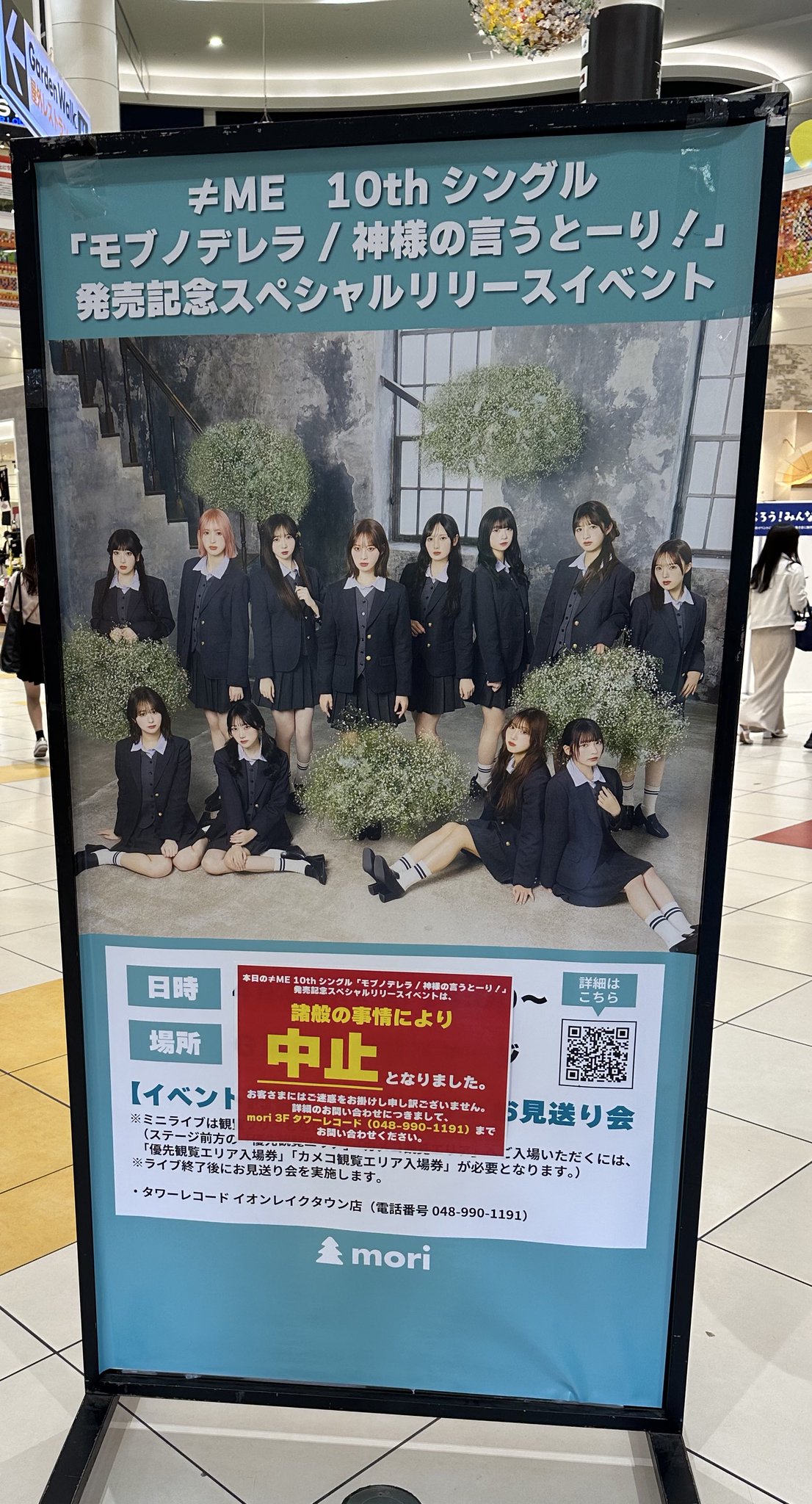 中止となったのは、10枚目の両A面シングル「モブノデレラ/神様の言うとーり!」発売記念スペシャルリリースイベント。