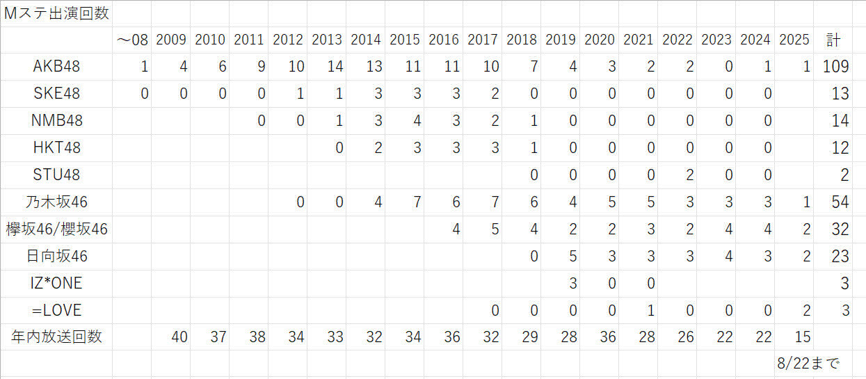 Mステ出演回数