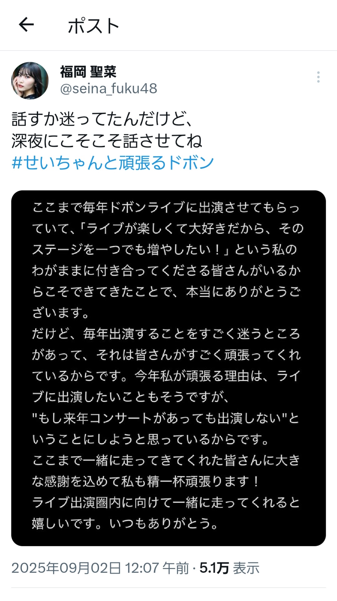 — 福岡 聖菜 (@seina_fuku48) September 1, 2025