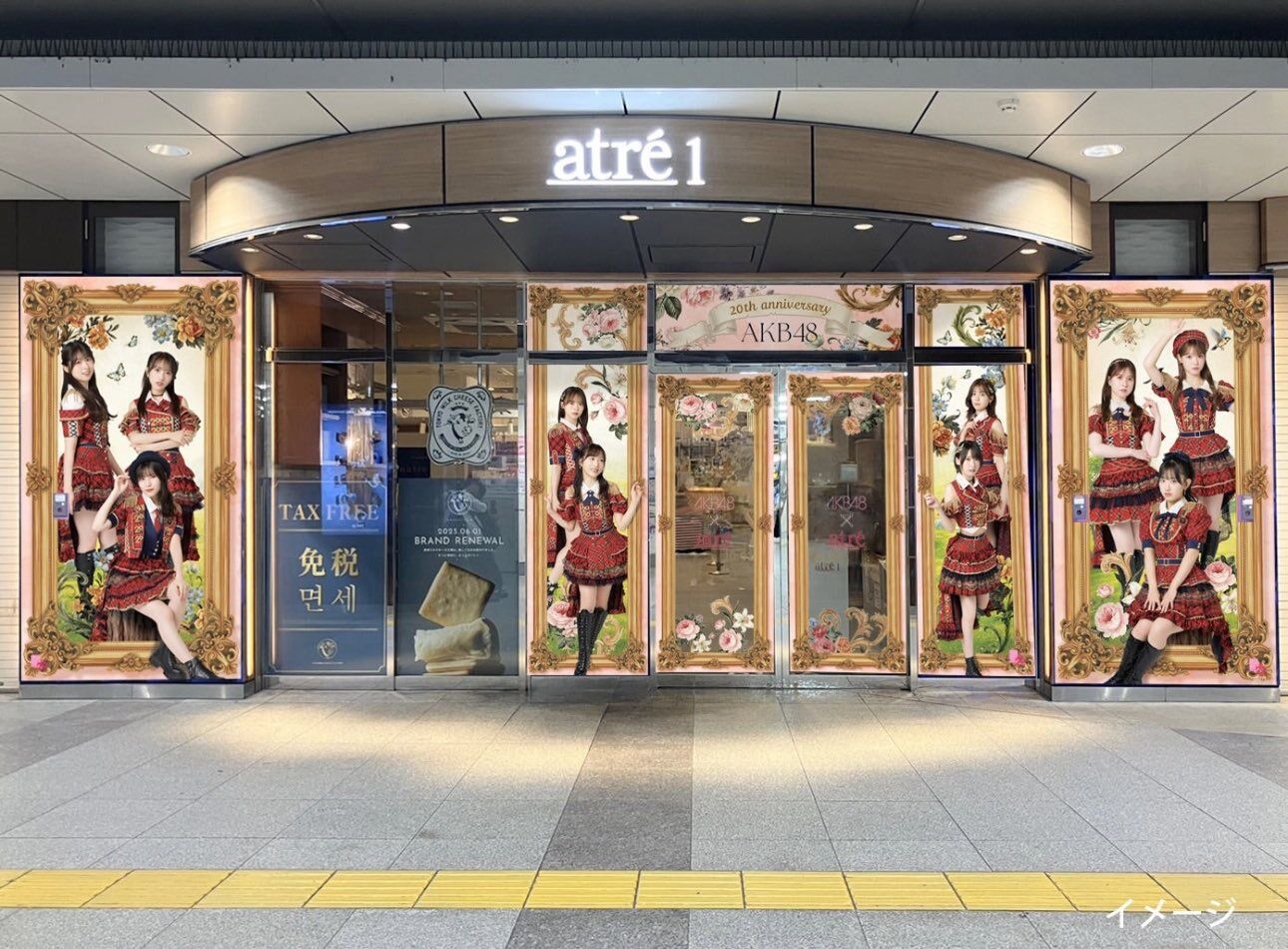 AKB48メンバーがアトレ秋葉原1館内外の装飾をジャック。東口には撮り下ろしビジュアルを使用したラッピング装飾を行います。そのほかポスターも掲示予定。