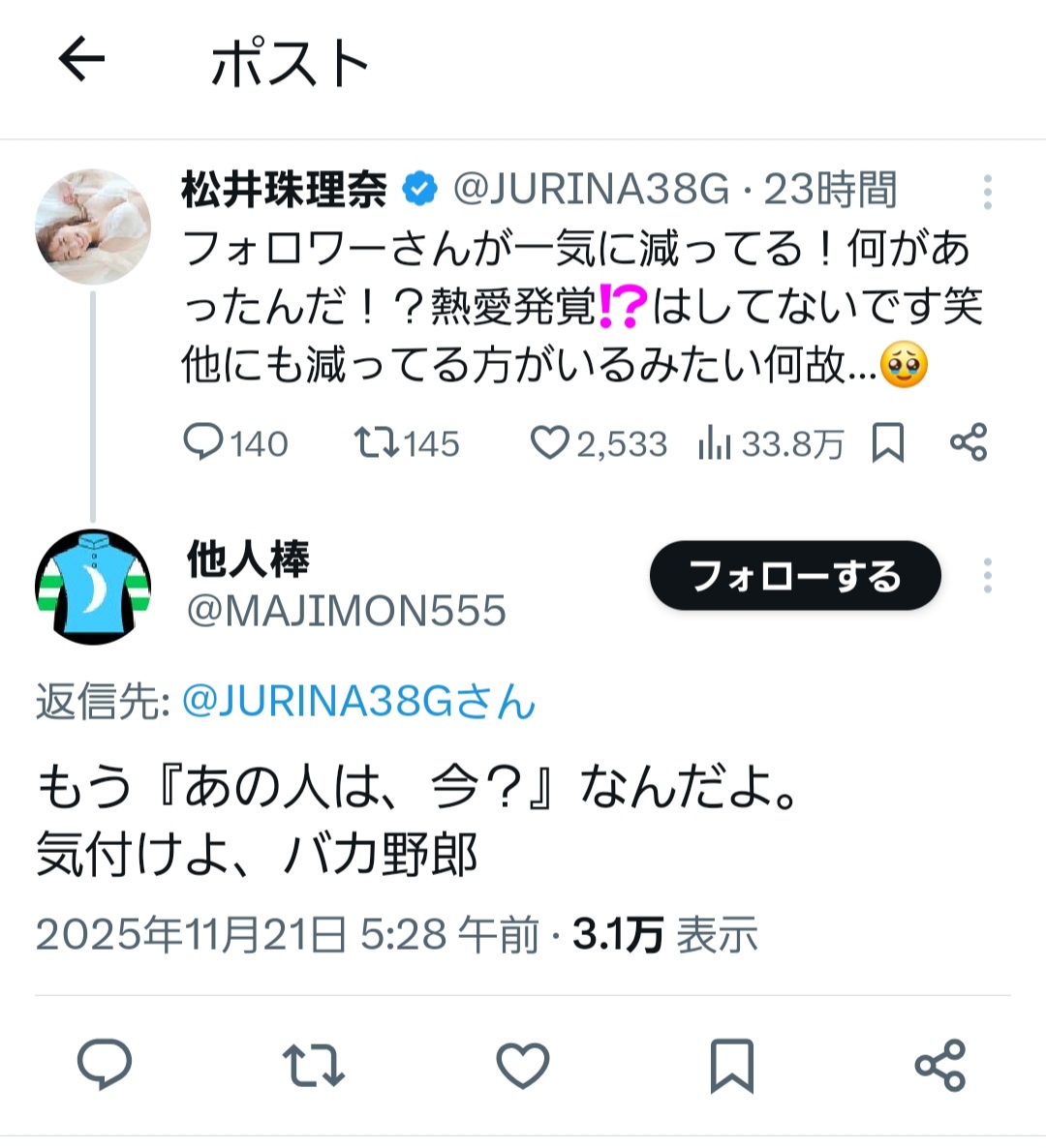 フォロワー減ってるけど今がいちばん幸せとな