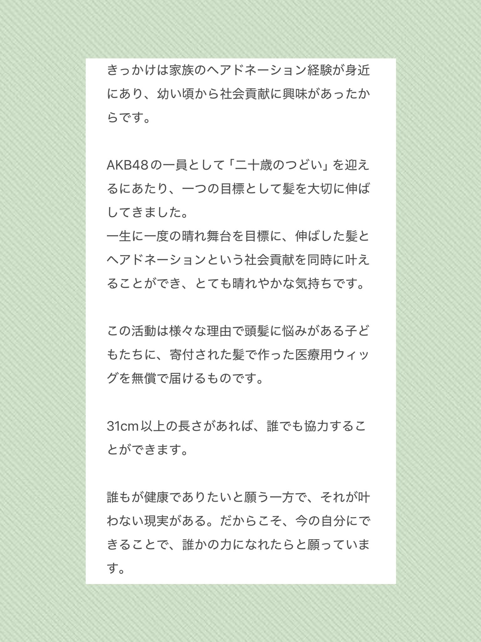 私のこの一歩が、誰かの笑顔や希望に繋がれば嬉しいです。