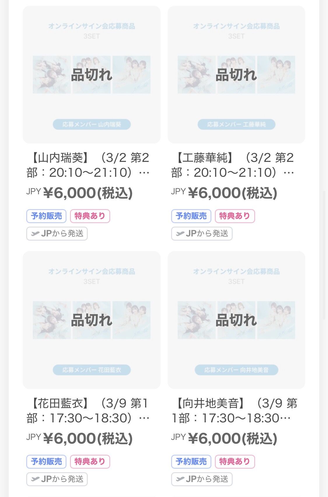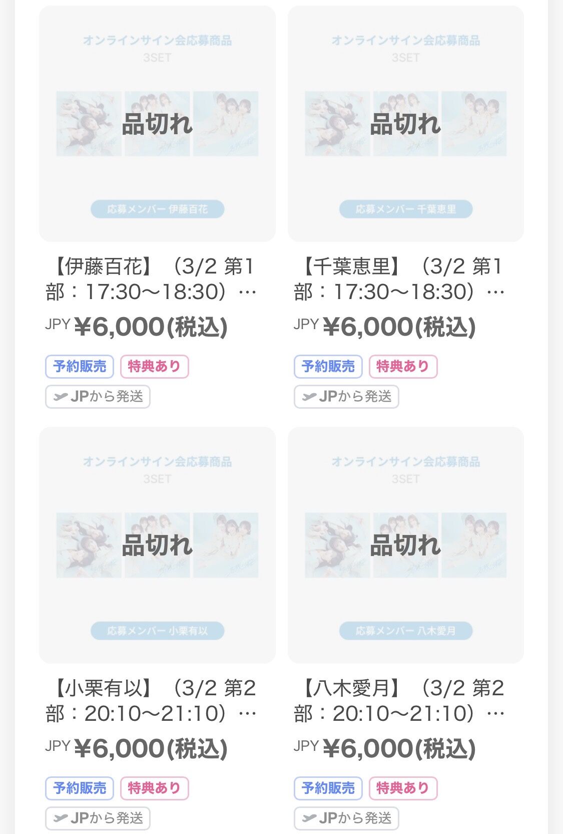 全部SOLDOUTになってたけど