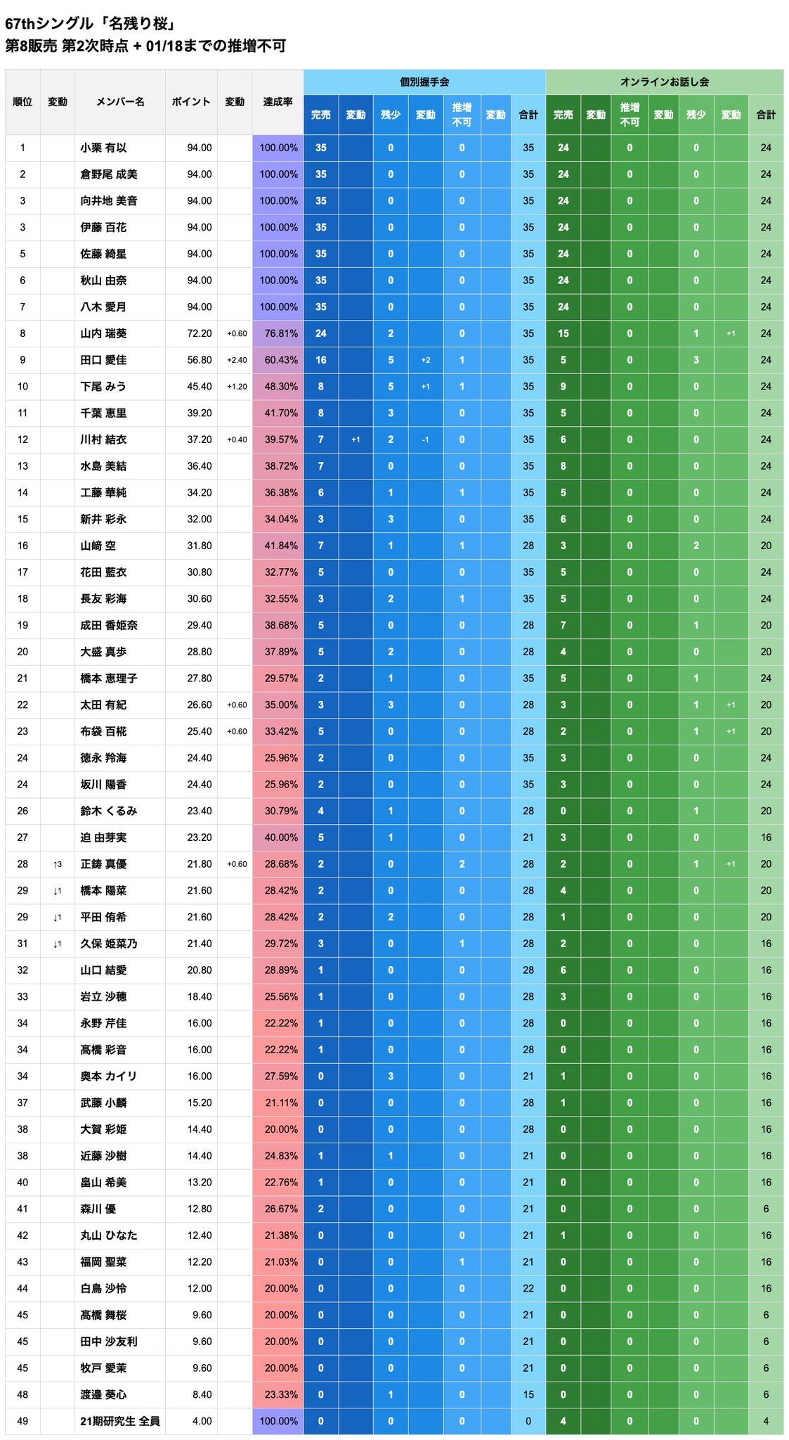 しかし18期が5人もいるので最も売上少ない新井が落ちる可能性が高い