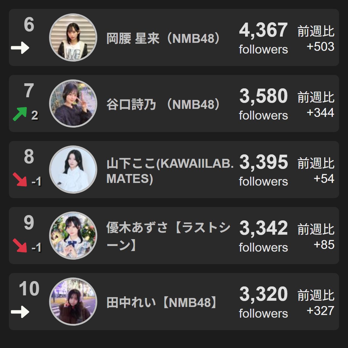 6位:岡腰 星来(NMB48)